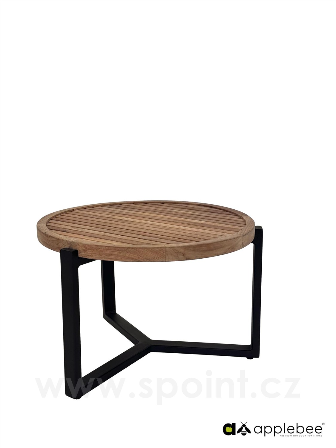 Konferenční stolek Monaco, Apple Bee, kulatý 60x41 cm, rám hliník Black, deska teak Natural