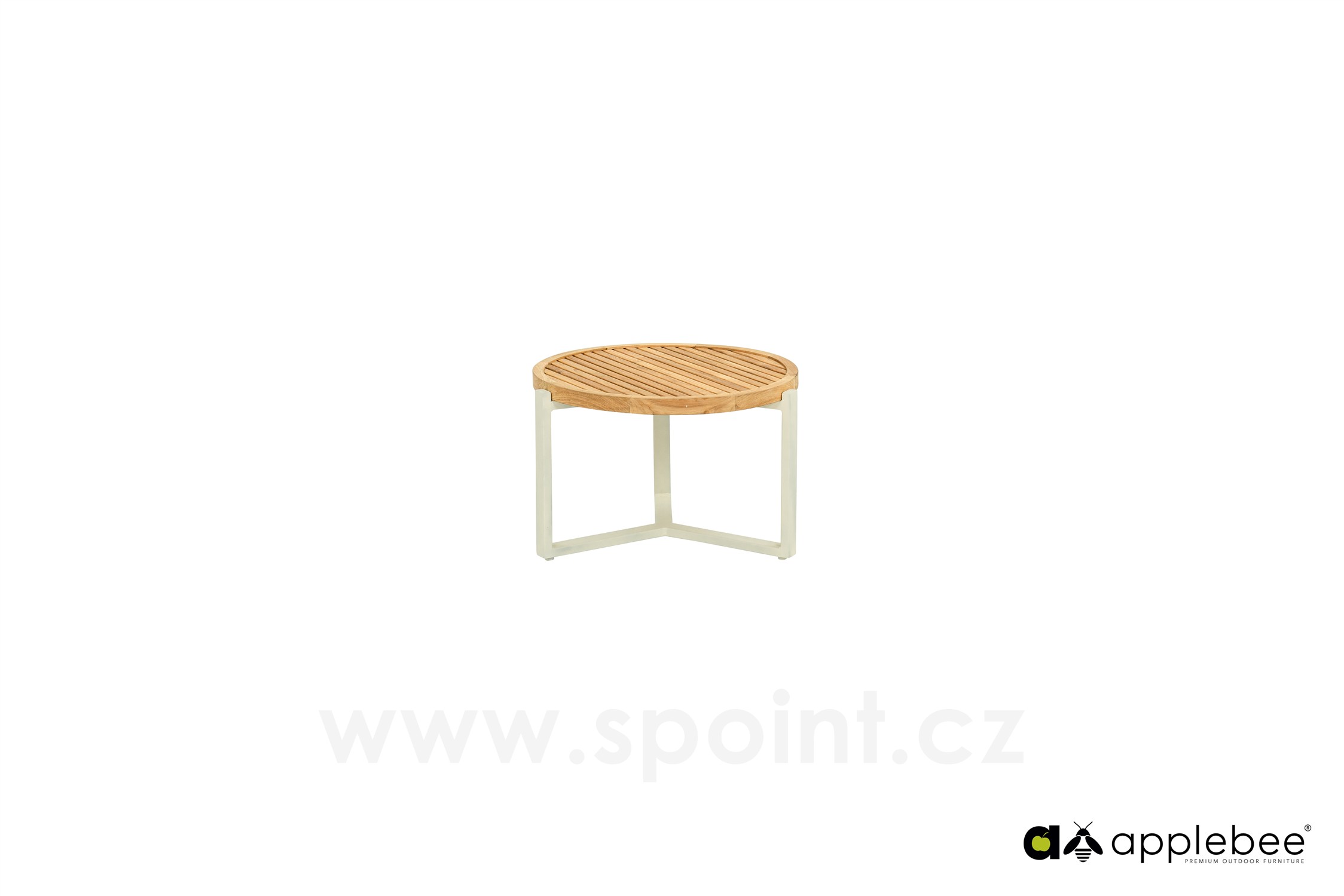 Konferenční stolek Monaco, Apple Bee, kulatý 60x41 cm, rám hliník Oyster, deska teak