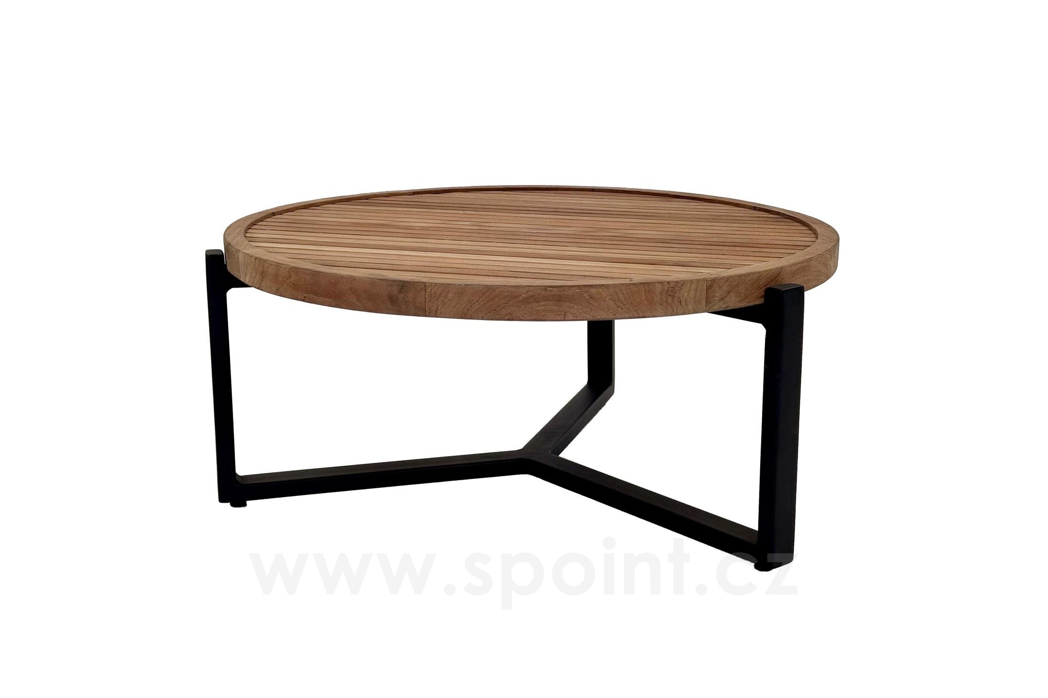 Konferenční stolek Monaco, Apple Bee, kulatý 75x34 cm, rám hliník Black (černá), deska teak