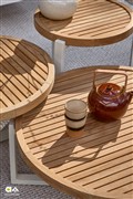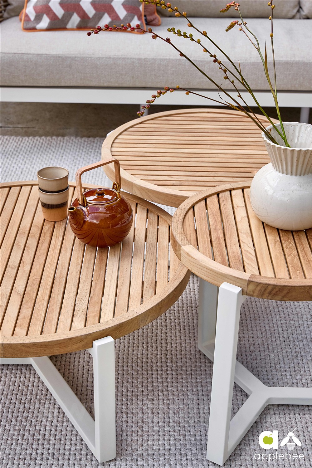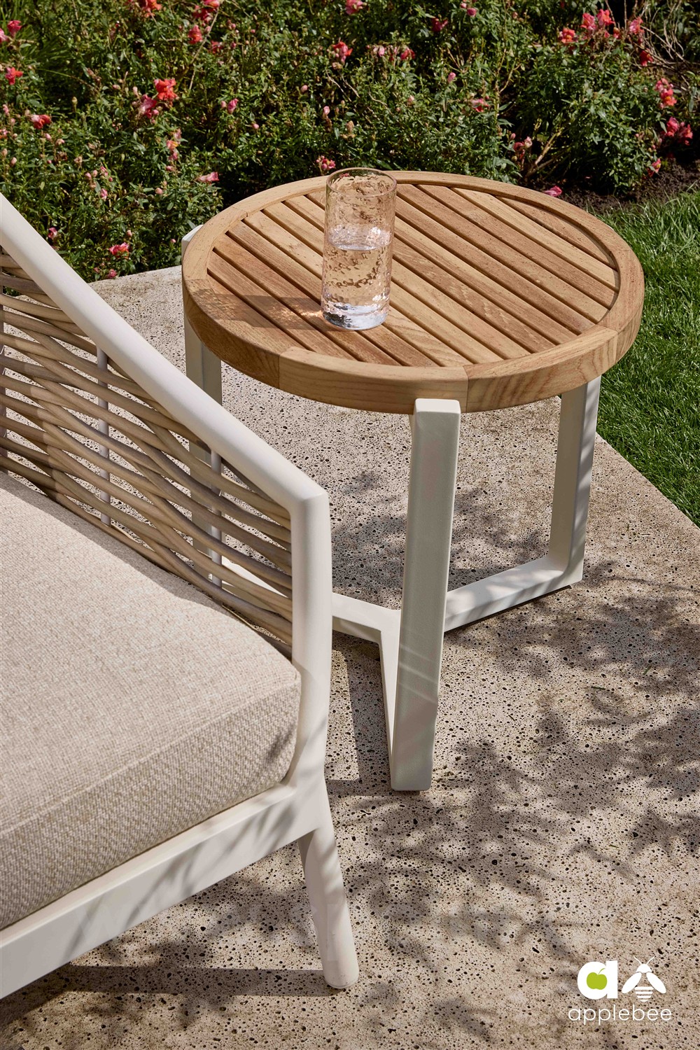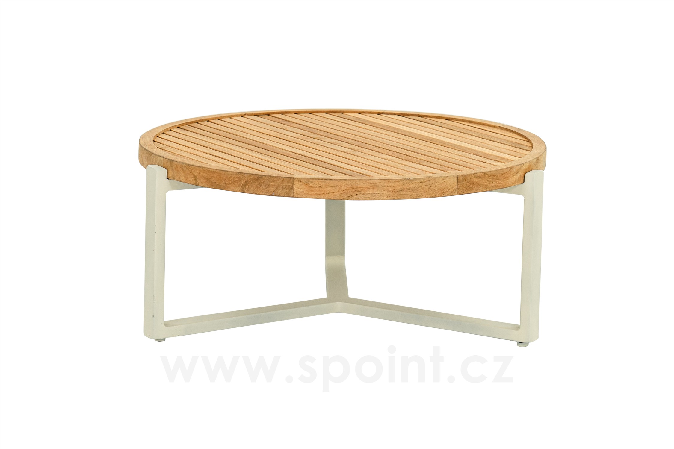 Konferenční stolek Monaco, Apple Bee, kulatý 75x34 cm, rám hliník Oyster (krémová), deska teak