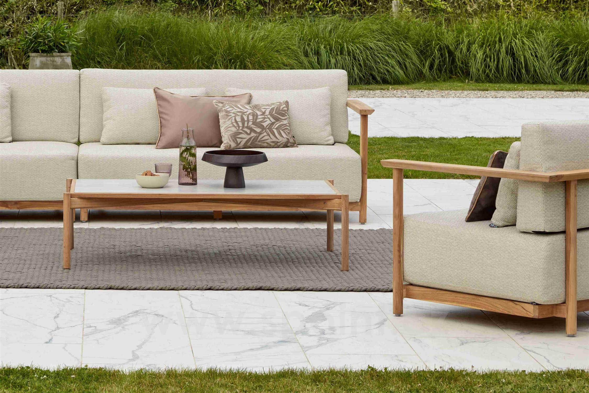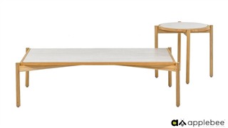 Konferenční stolek St.Lucia, Apple Bee, 128x70x35 cm, rám teak, deska keramika Travertino White