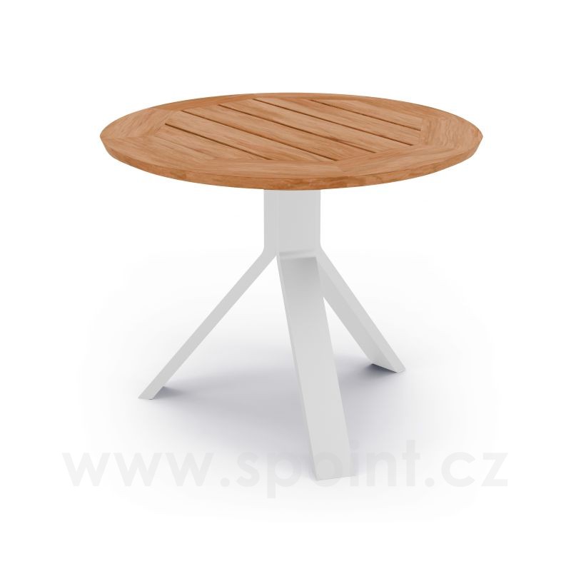 Odkládací stolek Freddie, Stern, kulatý 60x48 cm, rám lakovaný hliník white, deska teak