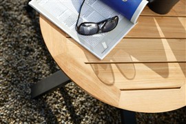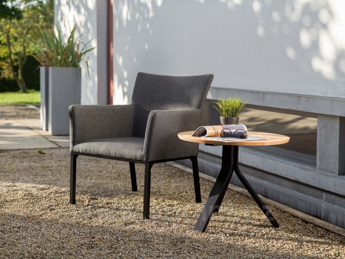 Odkládací stolek Freddie, Stern, kulatý 60x48 cm, rám lakovaný hliník graphite, deska teak