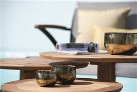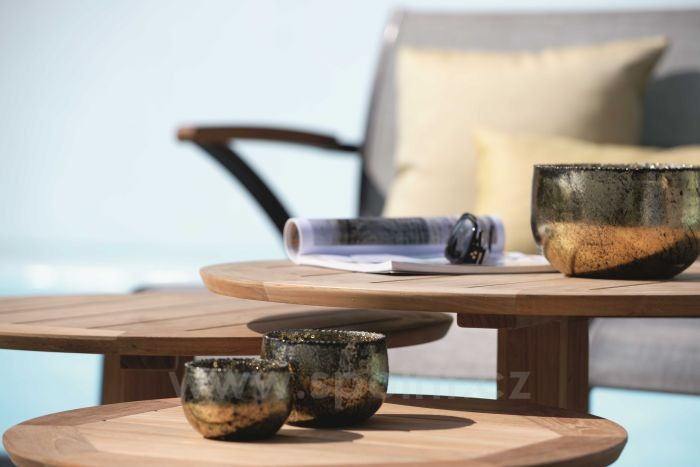 Odkládací stolek Freddie, Stern, kulatý 60 cm, V 48 cm, hliník, teak