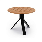 Odkládací stolek Freddie, Stern, kulatý 60x48 cm, rám lakovaný hliník černý (black matt), deska teak