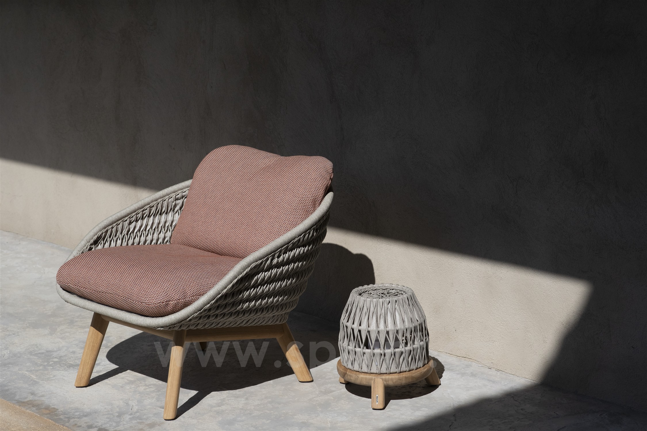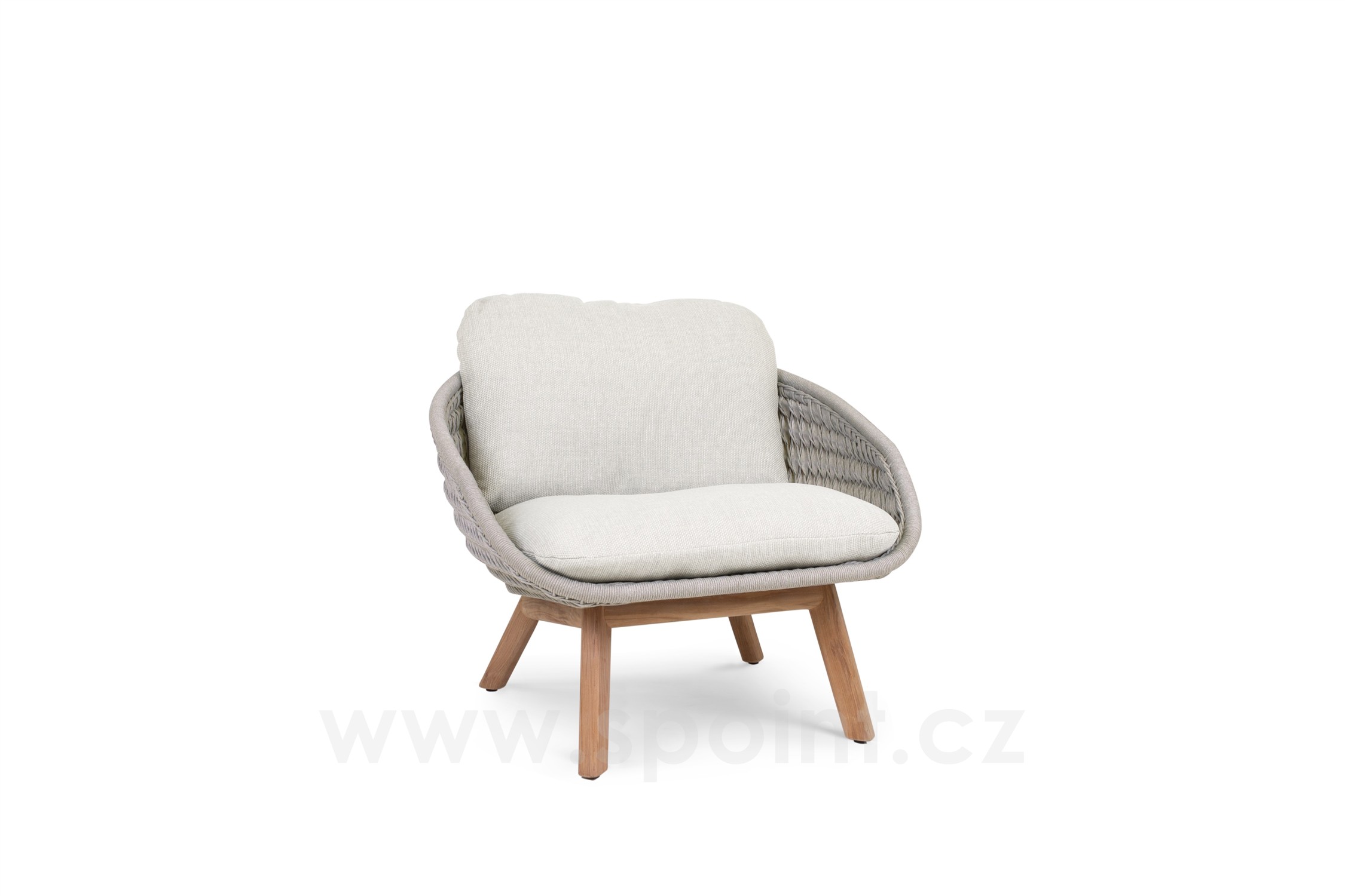 Teakové nízké křeslo Sandua, Manutti, 67x66x81 cm, rám teak, výplet lanko dicord pepper, bez polstrů