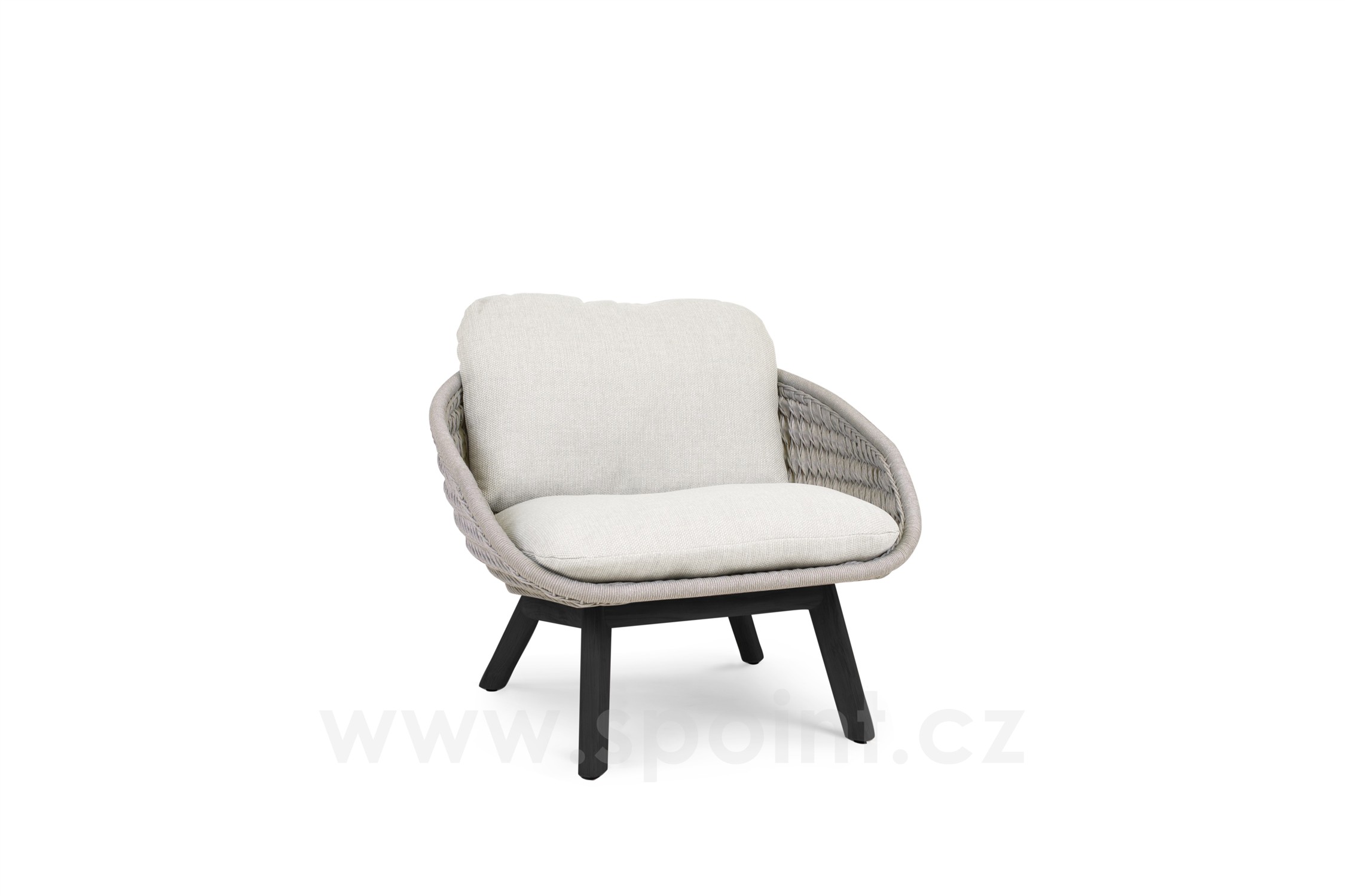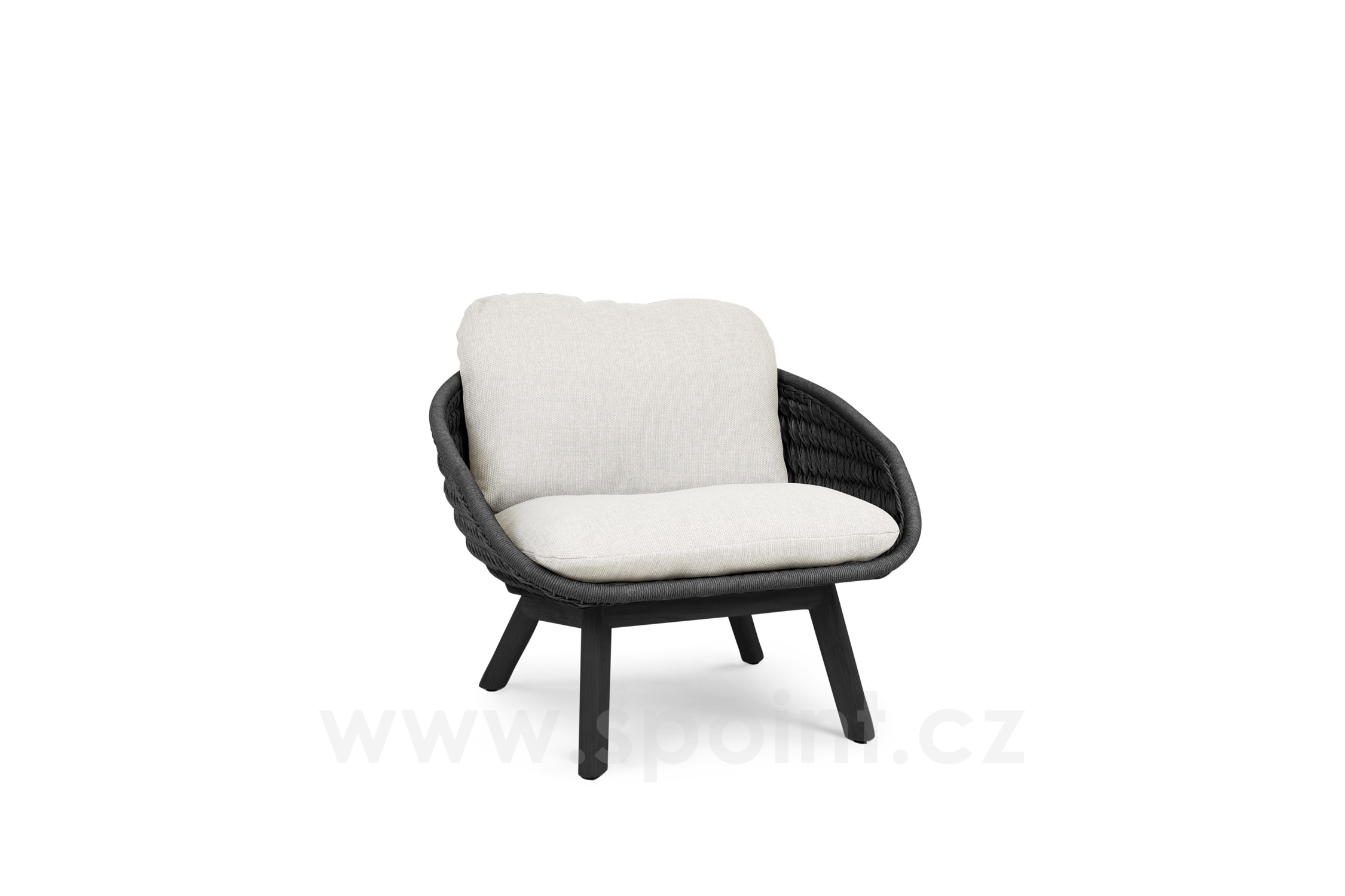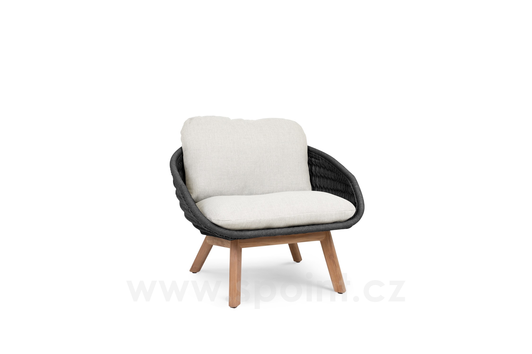 Teakové nízké křeslo Sandua, Manutti, 67x66x81 cm, rám černě mořený teak, výplet lanko dicord anthracite, bez polstrů