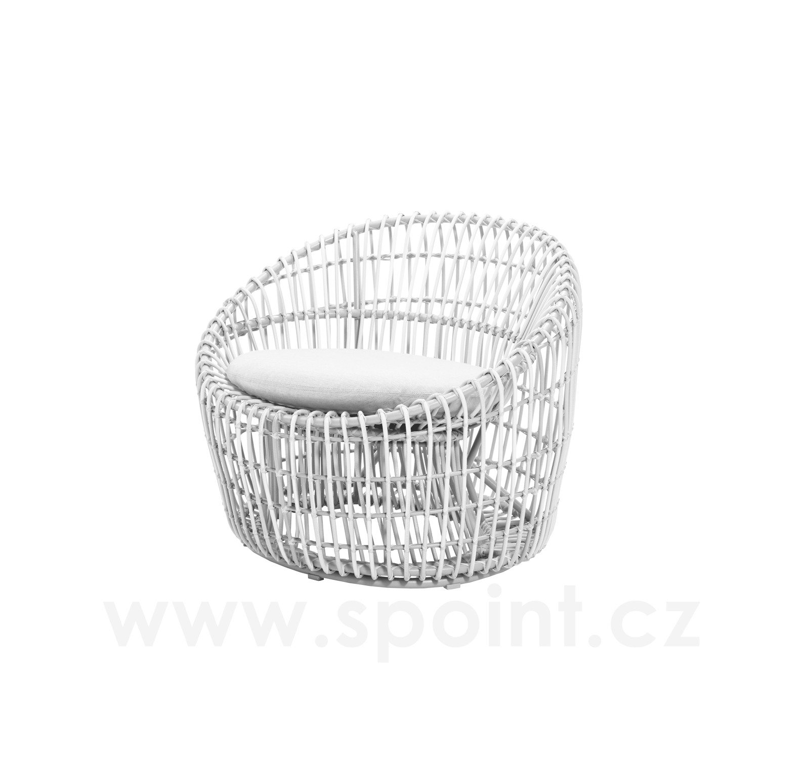 Nízke okrúhle kreslo Nest, Cane-line, rám hliník, výplet umelý ratan farba white, sedáky vonkajšia látka Natté white