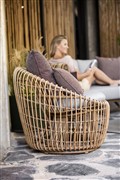 Nízke okrúhle kreslo s nízkou chrbtovou opierkou Nest, Cane-line, umelý ratan