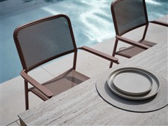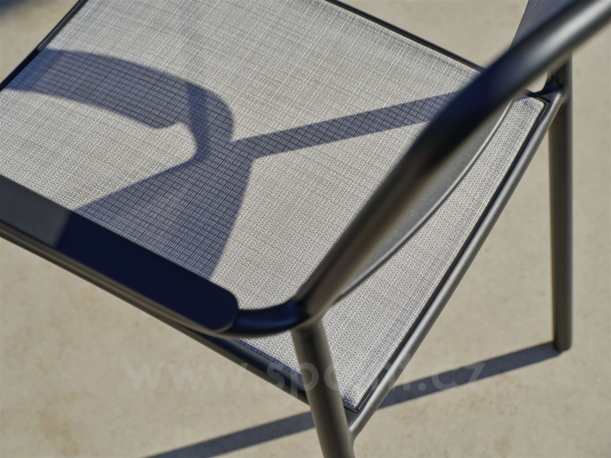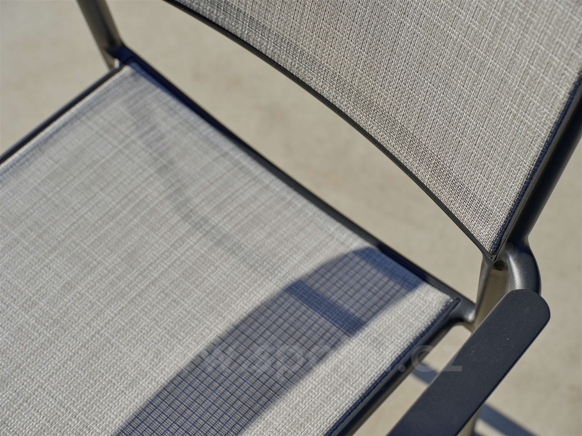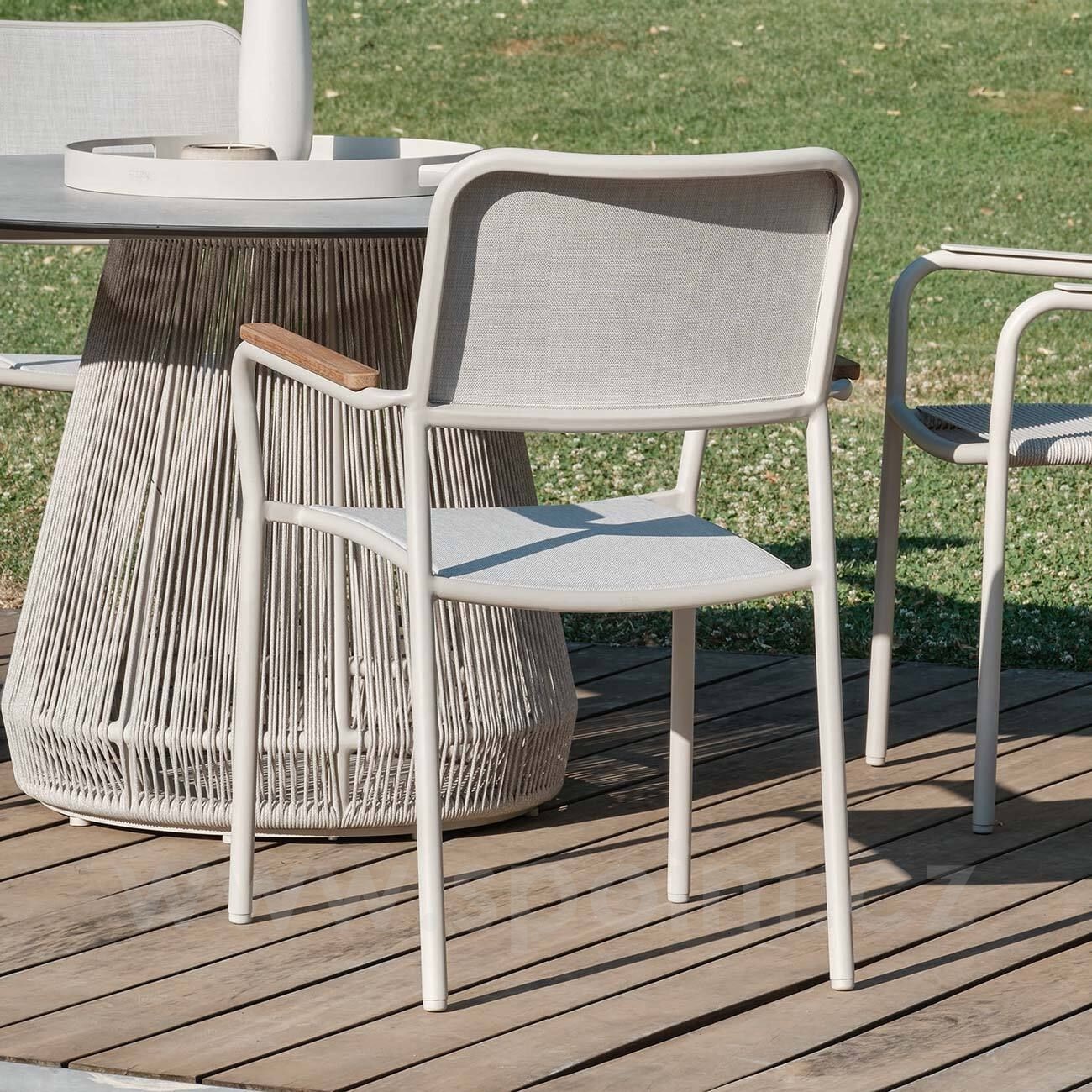 • Jídelní křeslo má hliníkový rám a výplet z pohodlného a pružného textilenu.
