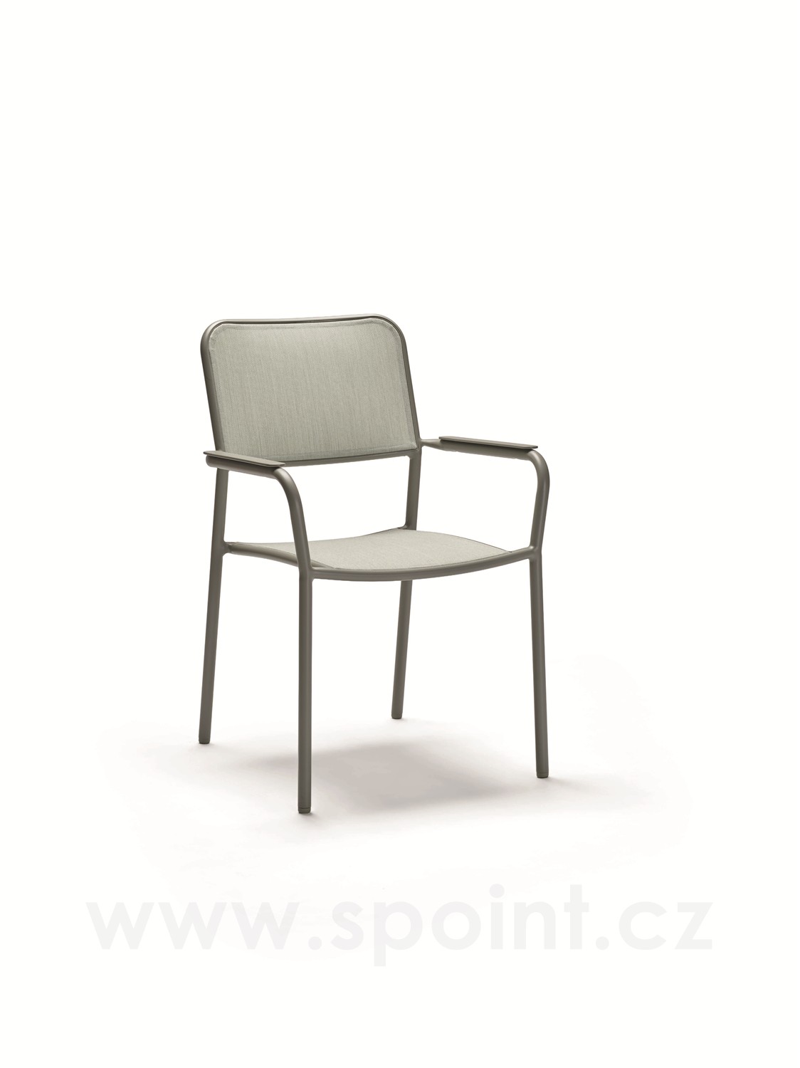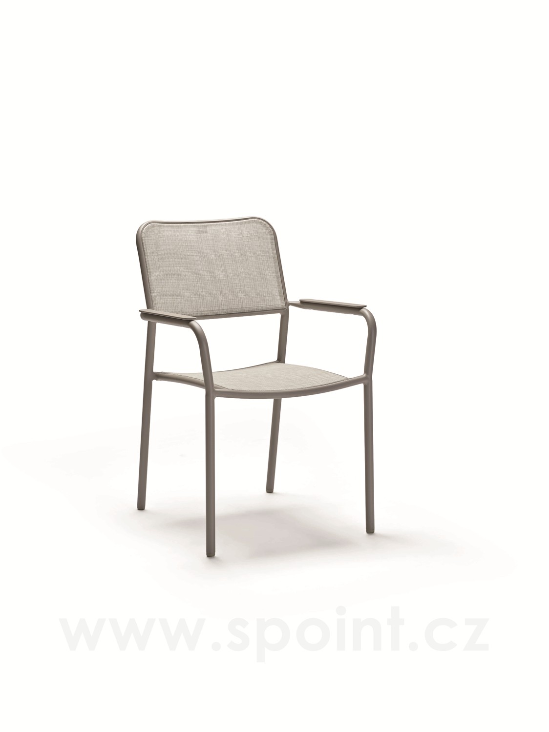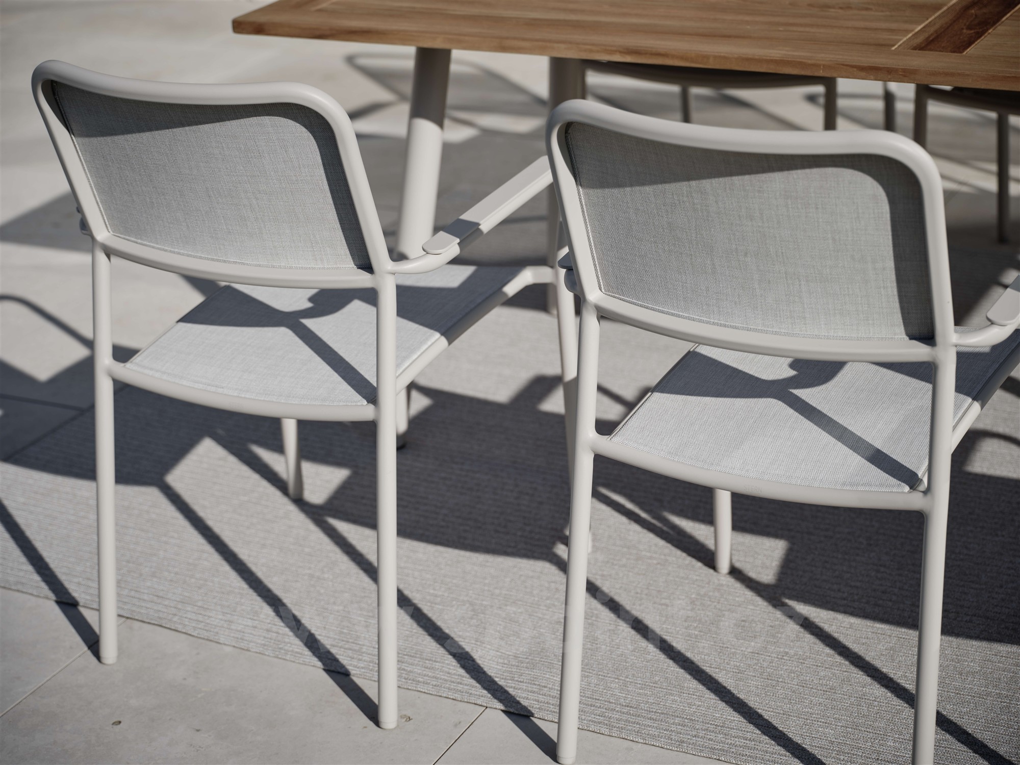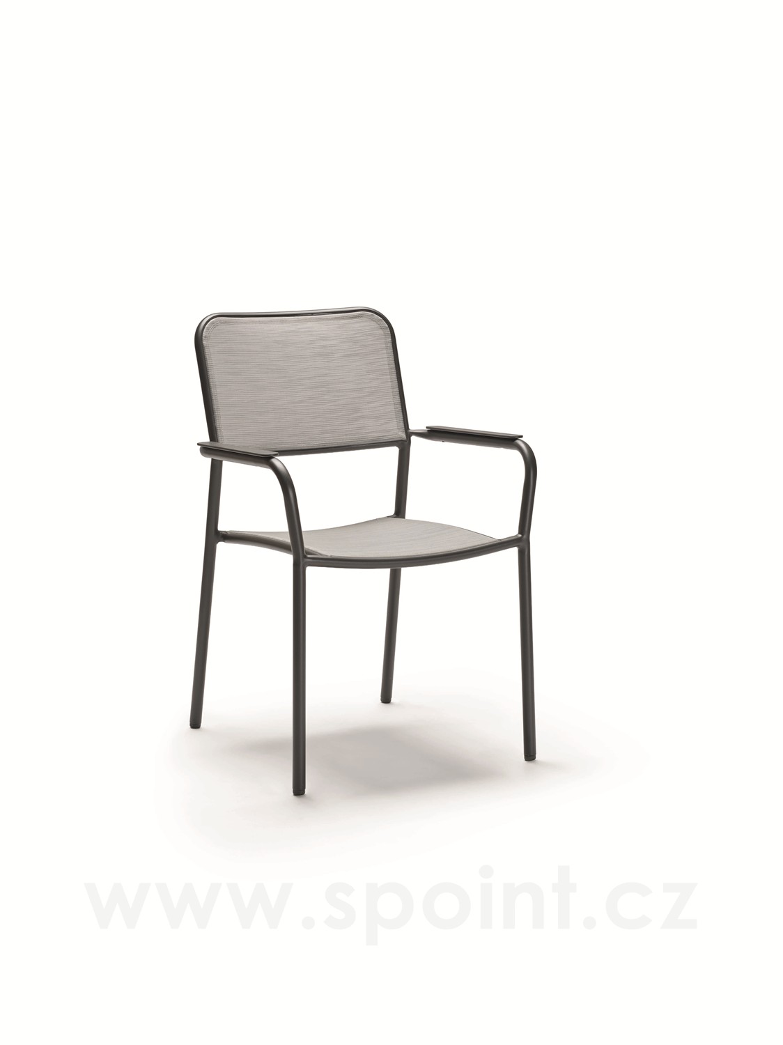 • Jídelní křeslo má hliníkový rám a výplet z pohodlného a pružného textilenu.