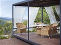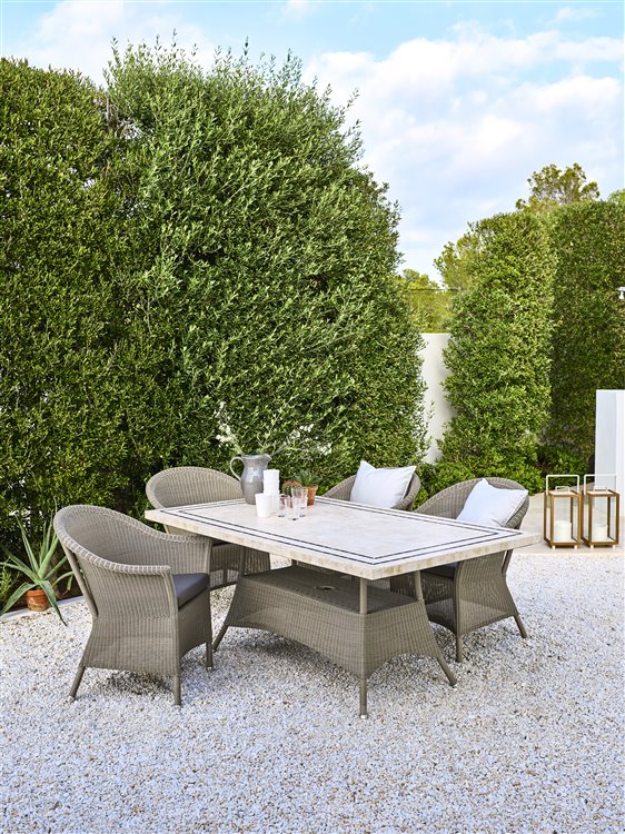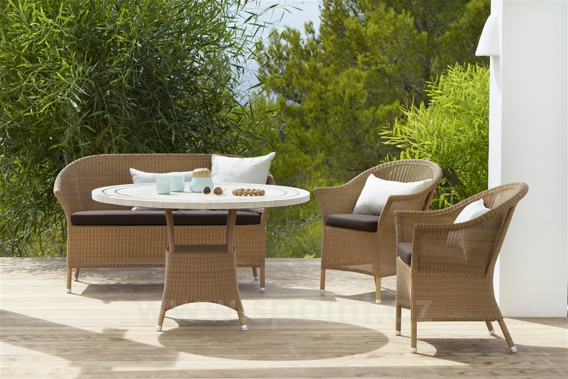 Zahradní ratanové jídelní křeslo Lansing značky Cane-line. Hliníková konstrukce zahradního jídelního křesla je opletena umělým ratanem.