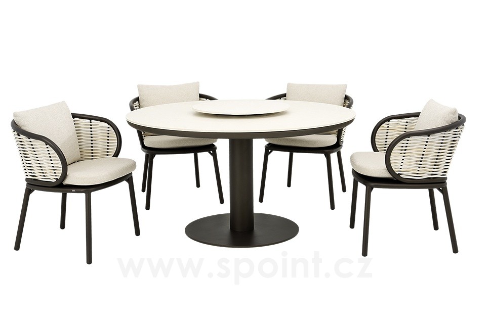 Jídelní křeslo Pine Key, Apple Bee, rám hliník Oyster, proutěný výplet Seashell, sedáky venkovní látka Cotton Flower